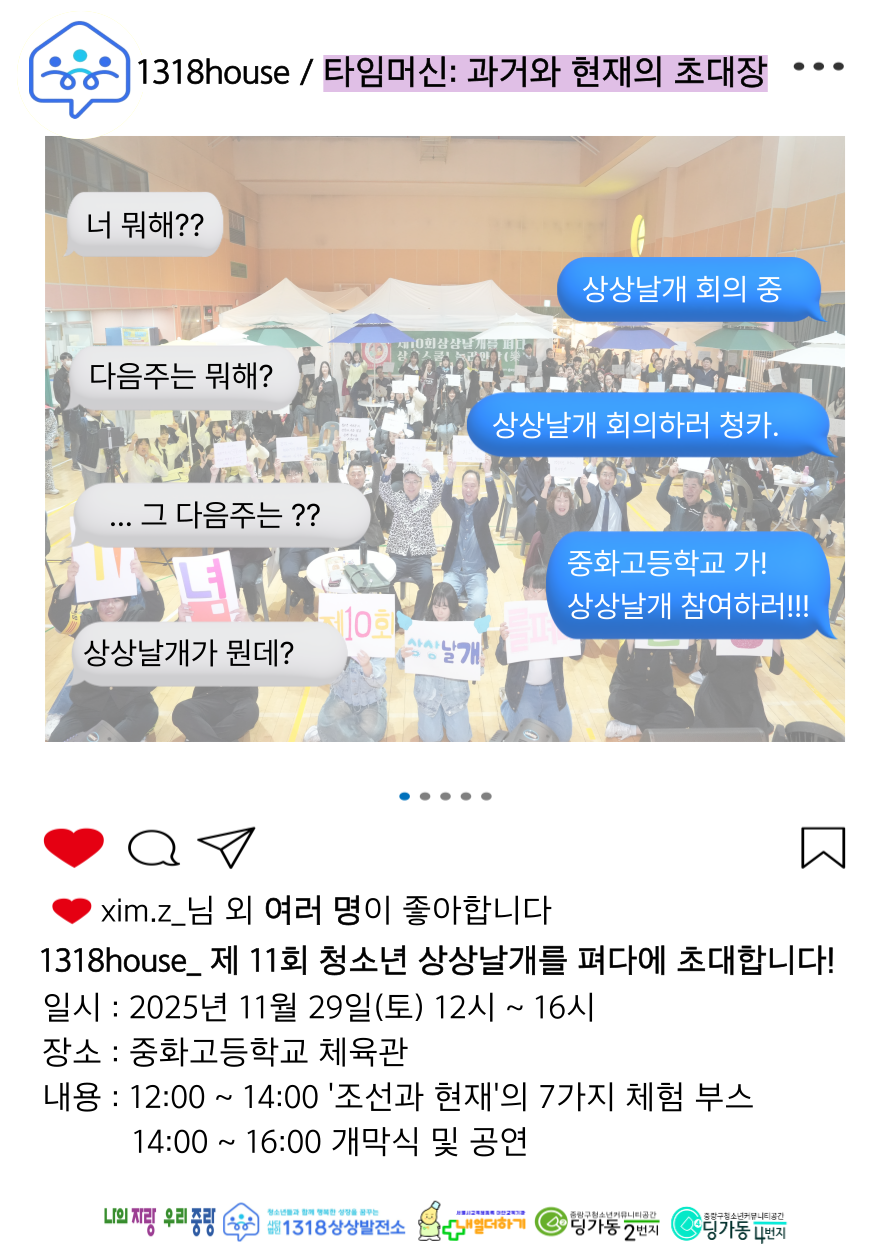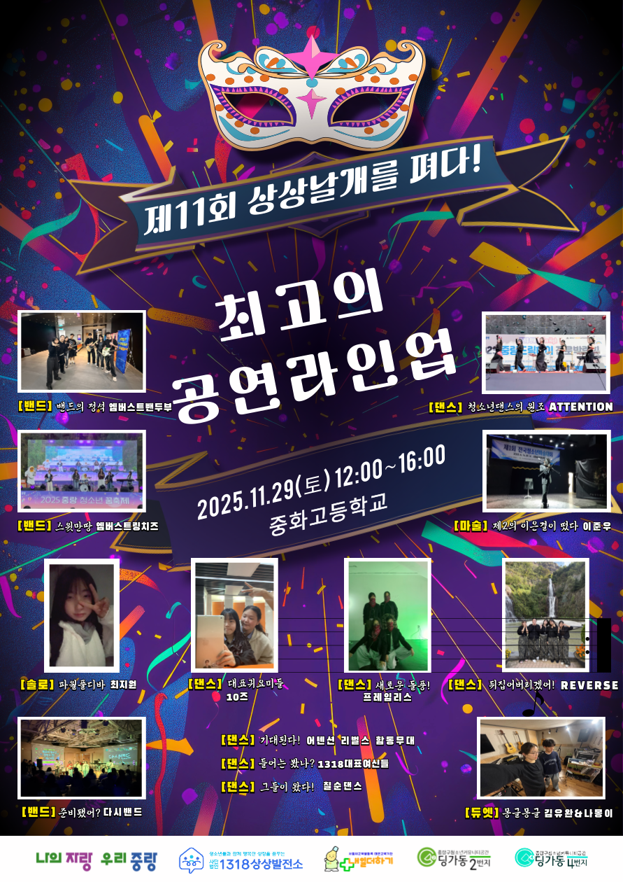 함께 달려온 우리 청소년들의 용기와 열정에 박수를 보냅니다. 청소년 스스로 기획하고, 직접 만들어낸 청소년축제 상상날개를 펴다는 올해의 축제가 끝이 아니라, 또 다른 시작입니다.